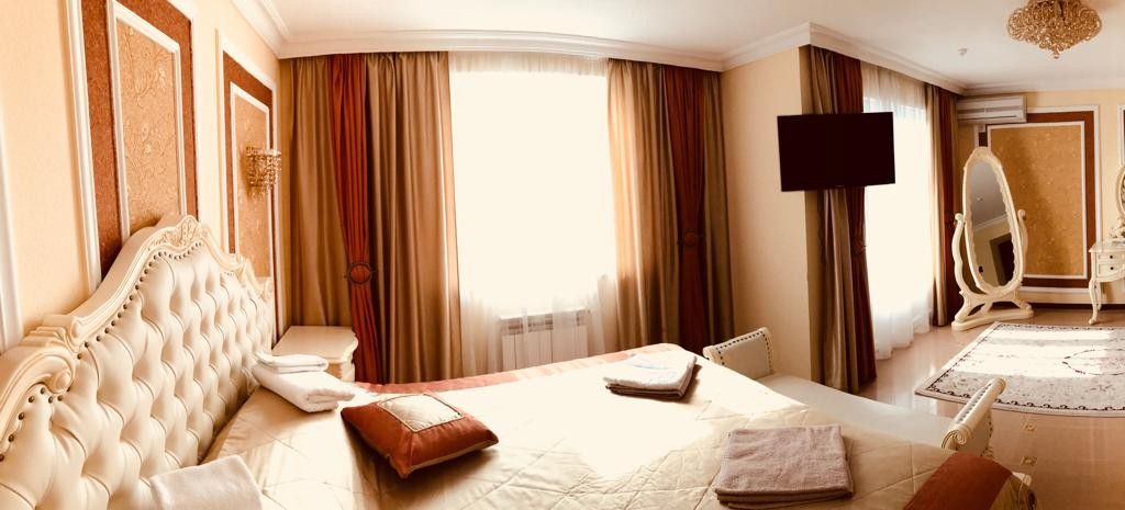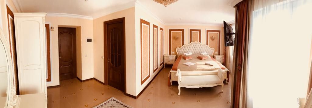 Площадь номера - 55 кв.м. 2 осн. места. 2 доп. места. Балкон. Мебель: вешалка, диван раскладной, зеркало, комод, кресло, кровать двуспальная, набор мягкой мебели, прикроватные тумбочки, стол (на 10 персон), стулья, шкаф. Оборудование: камин, кондиционер, набор посуды, телевизор (2 шт.), холодильник, чайная станция. Санузел: биде, с душевой кабиной, туалетные принадлежности. Сервис: Wi-Fi бесплатно, смена полотенец (1 раз в 6 дней, по требованию), смена постельного белья (1 раз в 6 дней, по требованию), уборка номера (ежедневно).