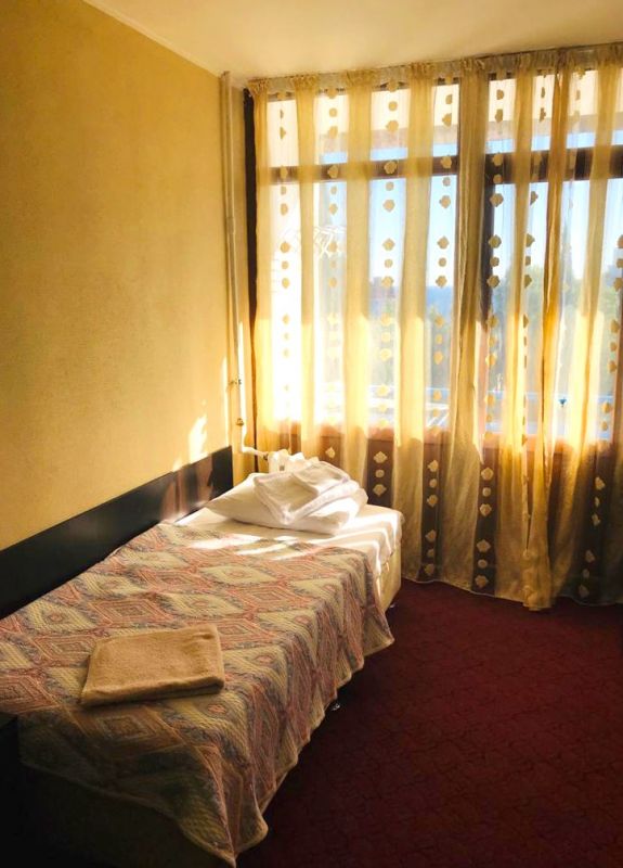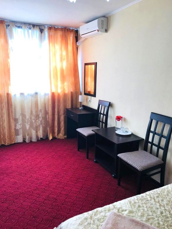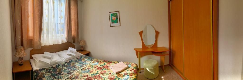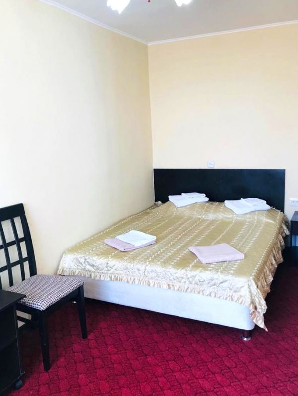 Площадь номера - 22-26 кв.м. 3 осн. места. 1 доп. место. Балкон. Мебель: вешалка, зеркало, кресло, кровать двуспальная, кровать односпальная (или диван раскладной), прикроватные тумбочки, столик журнальный, стул, шкаф. Оборудование: кондиционер, телевизор, холодильник, чайная станция. Санузел. Сервис: Wi-Fi бесплатно, смена полотенец (1 раз в 6 дней, по требованию), смена постельного белья (1 раз в 6 дней, по требованию), уборка номера (ежедневно).