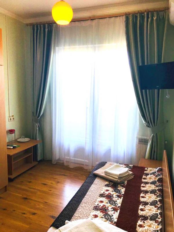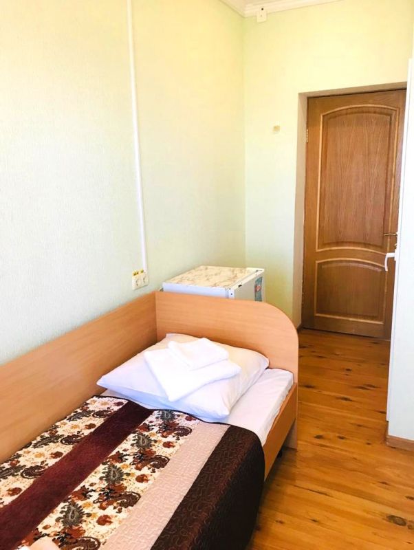 Площадь номера - 9 кв.м. 1 осн. место. Балкон. Мебель: вешалка, зеркало, кровать односпальная, прикроватная тумбочка, стол, стул, шкаф. Оборудование: кондиционер, телевизор, холодильник. Санузел: с душем, туалетные принадлежности. Сервис: Wi-Fi бесплатно, смена полотенец (1 раз в 6 дней, по требованию), смена постельного белья (1 раз в 6 дней, по требованию), уборка номера (ежедневно).